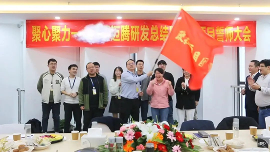 西安研發負責人與各部門負責人共同揮舞歐拉項目旗幟,這面鮮紅的旗幟,既是目標,也是承諾,是滿載使命的紅旗,昭示著邁騰西安研發團隊目標必達的決心。