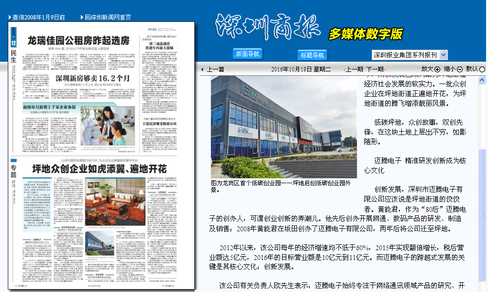 該公司有關負責人歐先生表示,邁騰電子始終專注于網絡通訊領域產品的研究、開發、生產、銷售及服務,致力于為全球網絡品牌商、運營商、集成商等客戶提供多元化、個性化的定制開發服務。產品涵蓋交換機、無線通信設備。經過8年的發展,員工已從不到200人擴展至2000多人。
